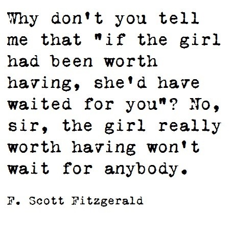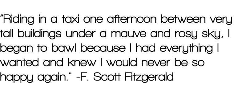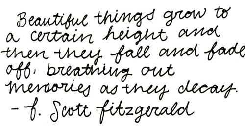 I was super excited to go see Great Gatsby a couple weekends ago.  It was a great movie.  I have always been a fan of F. Scott Fitzgerald.  He has a way wrapping life in the most eloquent, and often tragic, ways.  He was a poignant, aggravated soul.  My greatest accomplishment would be to write on that caliber, just once!  I’ve collected many of his quotes and decided today is the perfect day to post them. Enjoy.